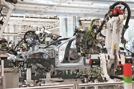 图为北京小米汽车工厂车间流水线。